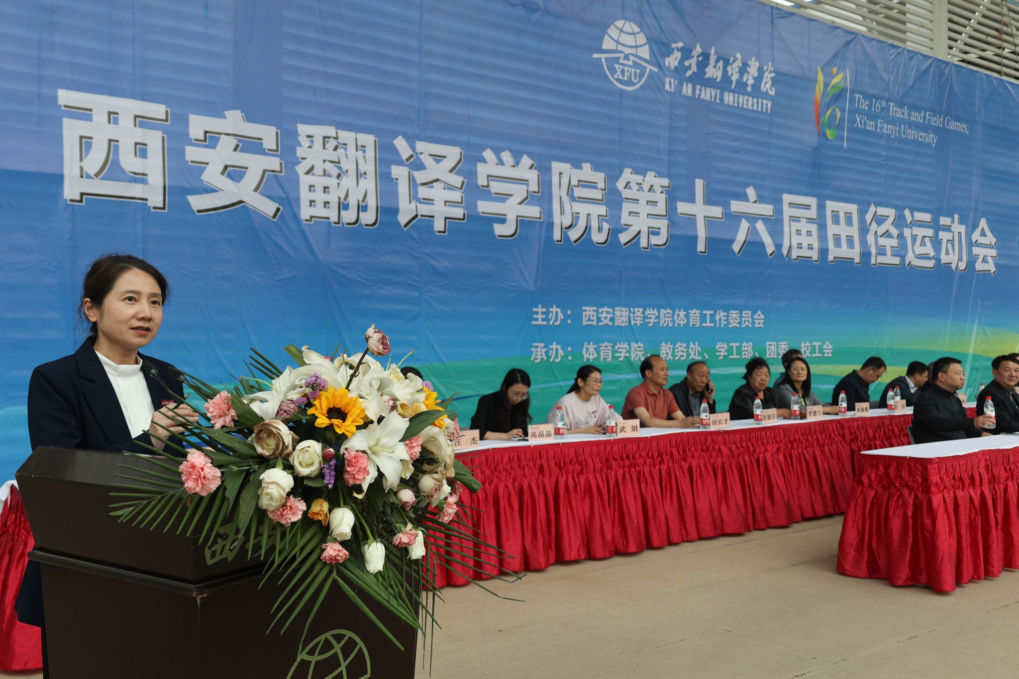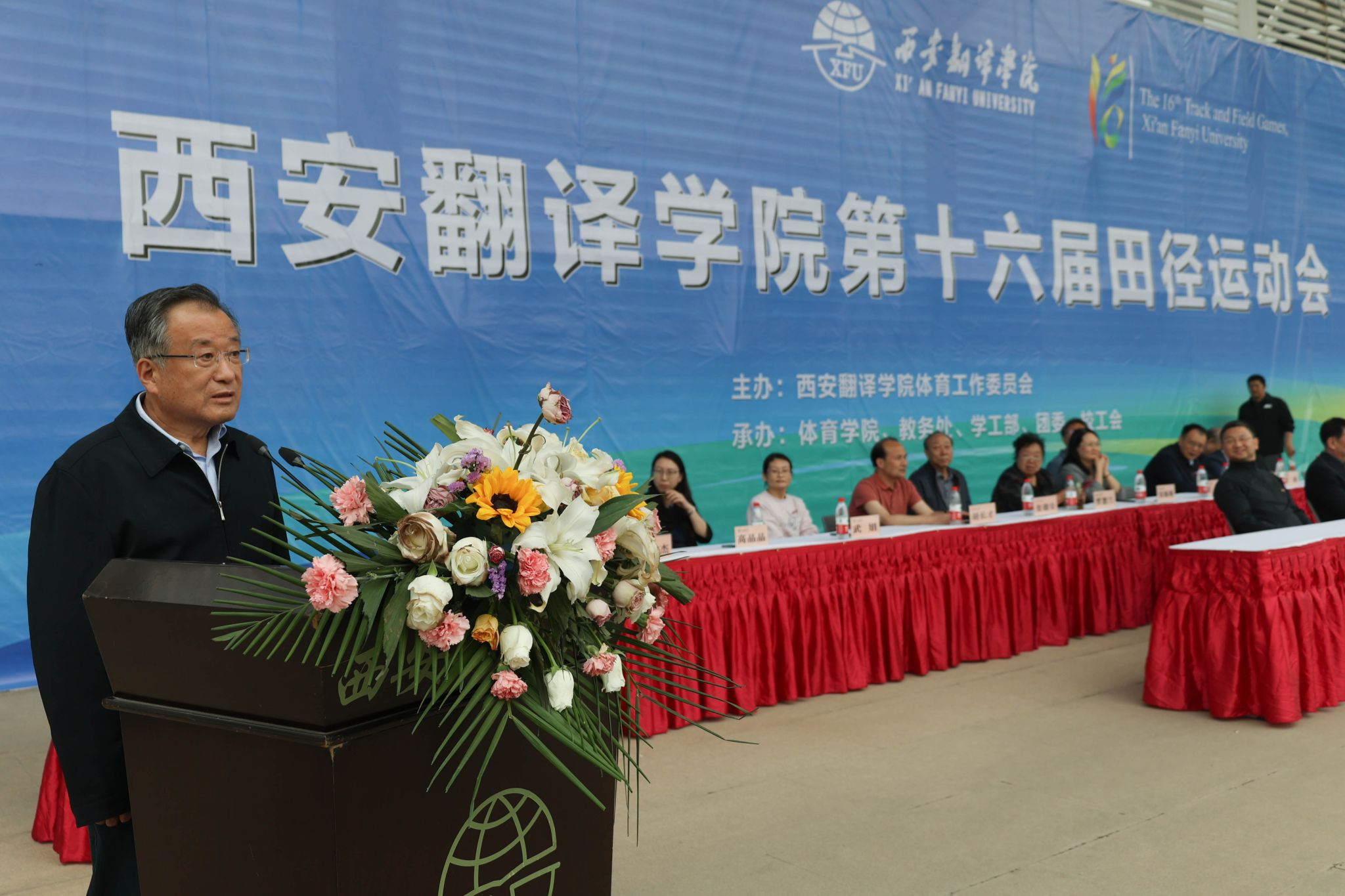 4月20日下午,西安翻译学院第十六届运动会圆满落幕。校长崔智林,副校长武忠远,副校长王霖,校党委副书记、工会主席王小惠,校党委副书记、副校长张恒,副校长王利晓出席。我校相关职能处室负责人、各二级学院师生参加闭幕式。闭幕式由教务处处长秦晓梅主持。