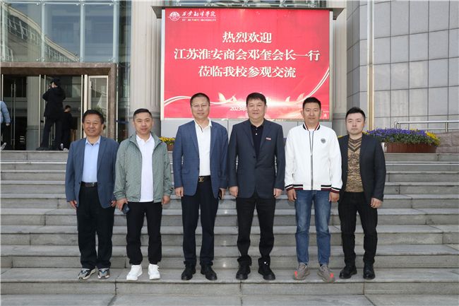 4月26日,江苏淮安商会会长邓奎一行来西安翻译学院洽谈校企合作,西安翻译学院副校长王霖热情接待来宾。
