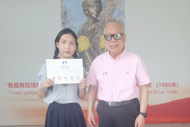 梁瑜颖与著名翻译家、海伦·斯诺研究专家安危老先生合影